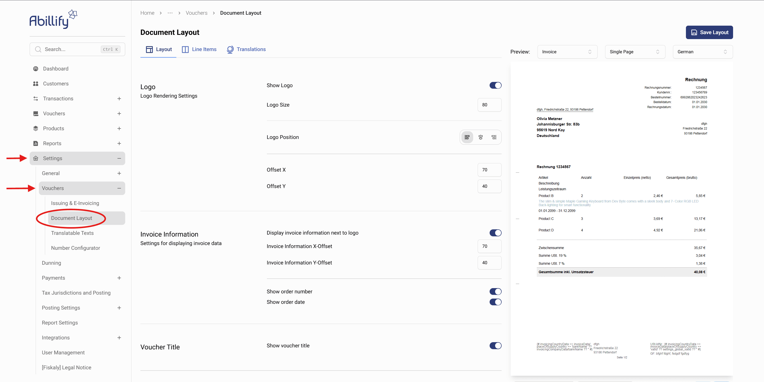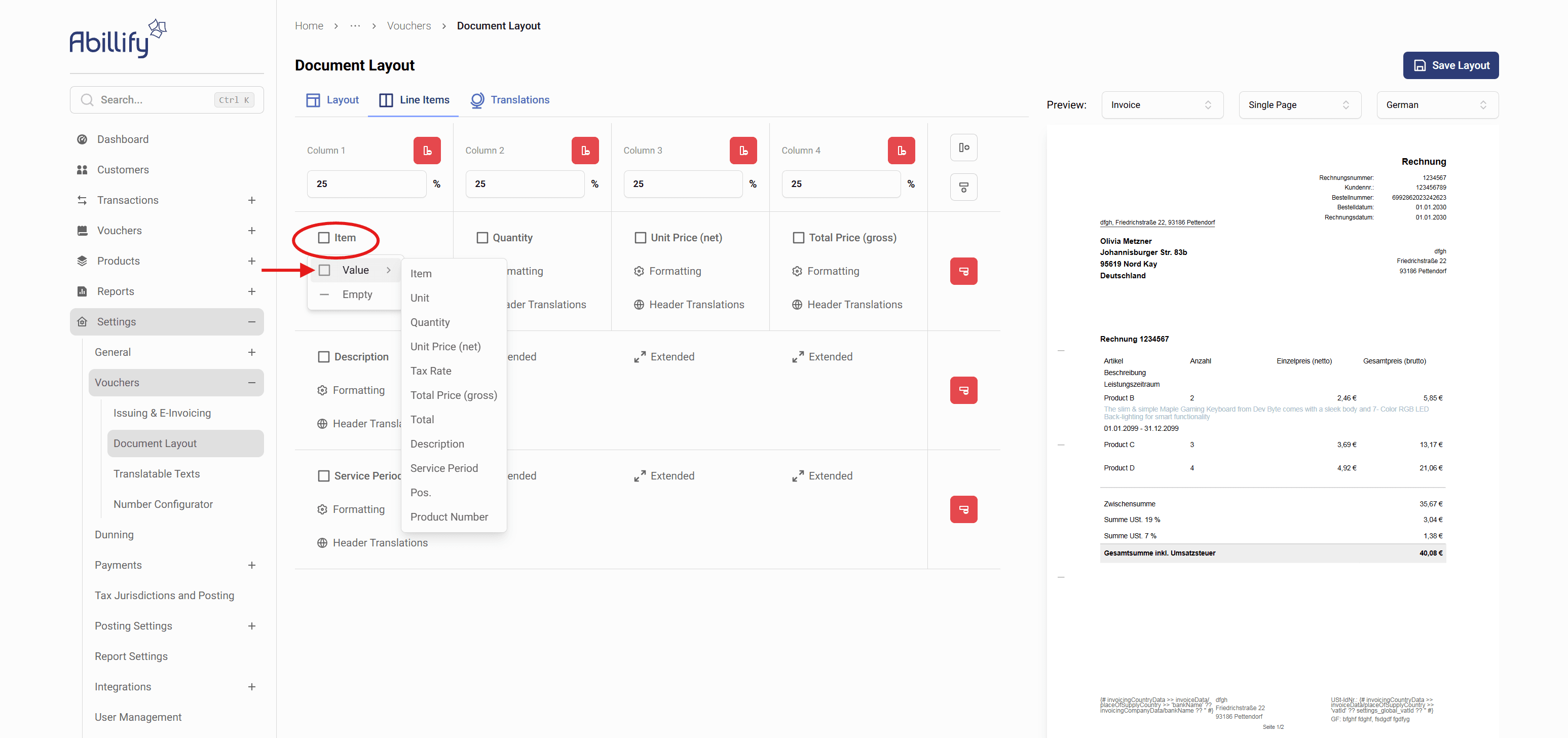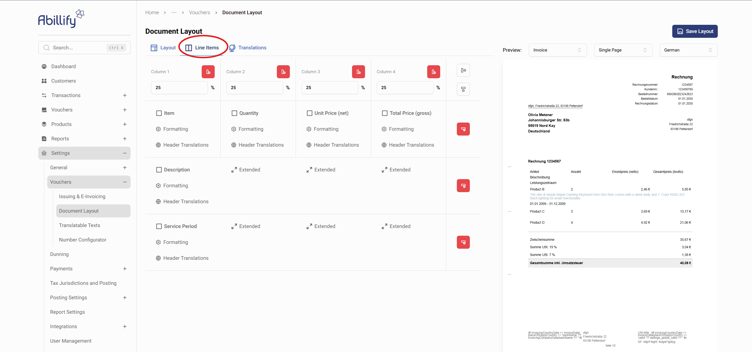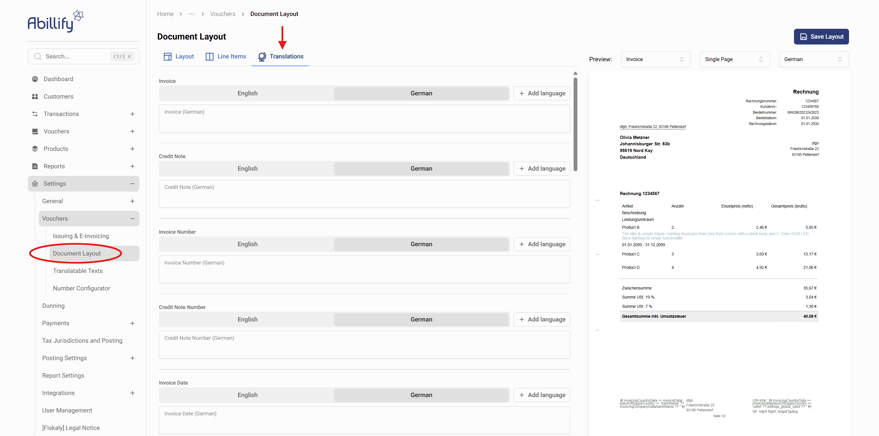 Define how invoices should look, be numbered, translated, and issued. - Invoice Creation